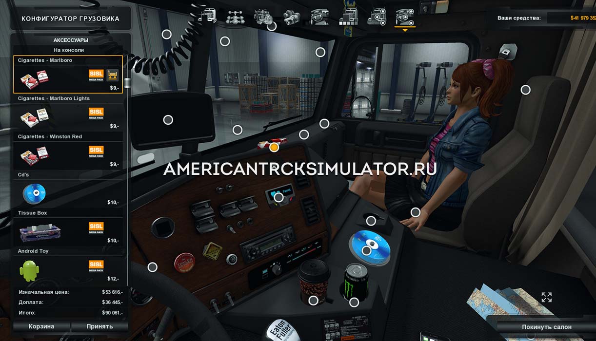 Представляем модель FLB, которая стандартно оснащена колесной базой 6x4 и низкой кабиной. Для увеличения технических характеристик в игре доступны мощные дизельные двигатели CAT, Caterpillar, Cumminis до 550 л.с. Интерьер салона грузовика выполнен в классическом Американском стиле, руль доступен в 5 вариантах. Главной особенностью является стандартная поддержка установки дополнительных аксессуаров внутри кабины DLC Cabin Accessories.