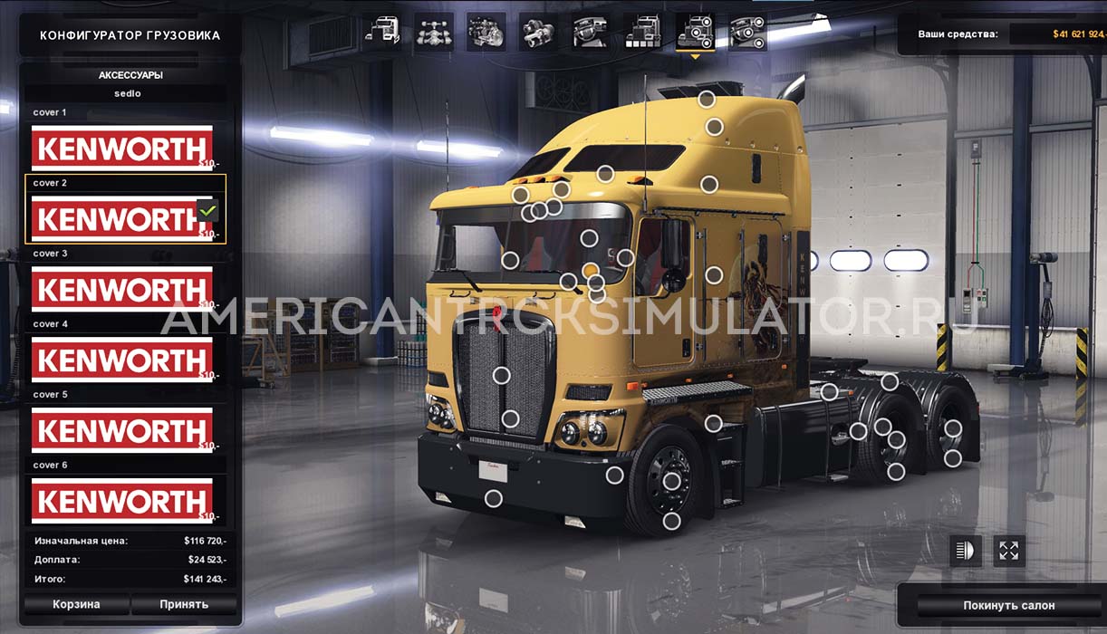 Грузовик поддерживает уникальные звуки, реалистичную физику. Прописывается отдельно. Доступен в автосалоне Kenworth.