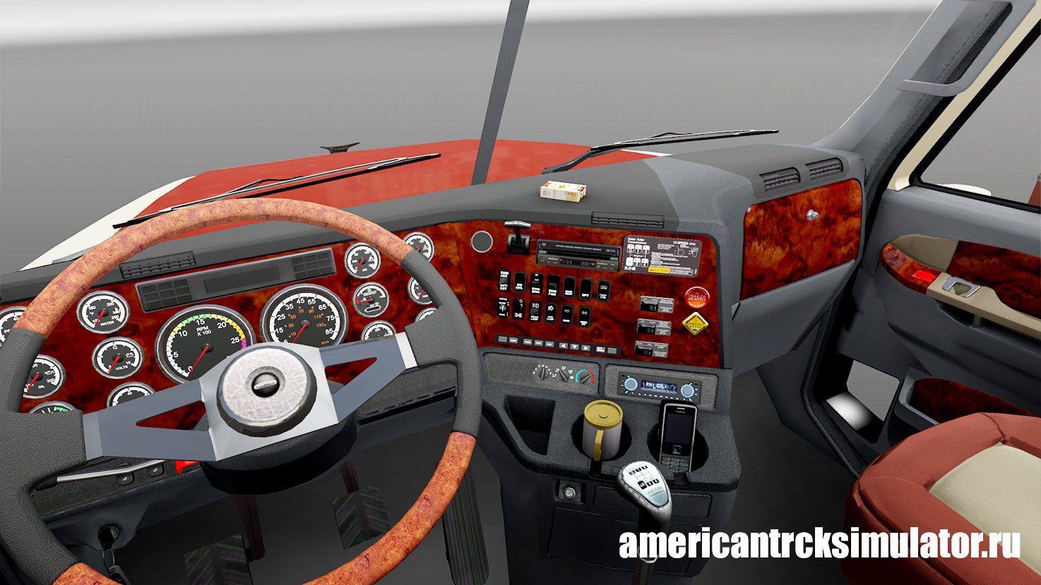 Мод для American Truck Simulatorгрузовик Coronado Freightliner. Данный мод добавляет в American Truck Simulator грузовик Coronado Freightliner. В игре для Coronado Freightliner доступно многое количество уникальных запчастей для тюнинга. Грузовик не поддерживает модификации кабины и шасси. Так же имеется некоторое количество уникальных скинов. Из запчастей доступны для тюнинга новые хромированные бампера, дополнительные зеркала заднего вида, свои колесные диски и шины, два вида брызговиков, хромированные удлиненные подножки, подкрыльники. Уникальной возможностью данного мода, добавление дыма в выхлопные трубы грузовика.