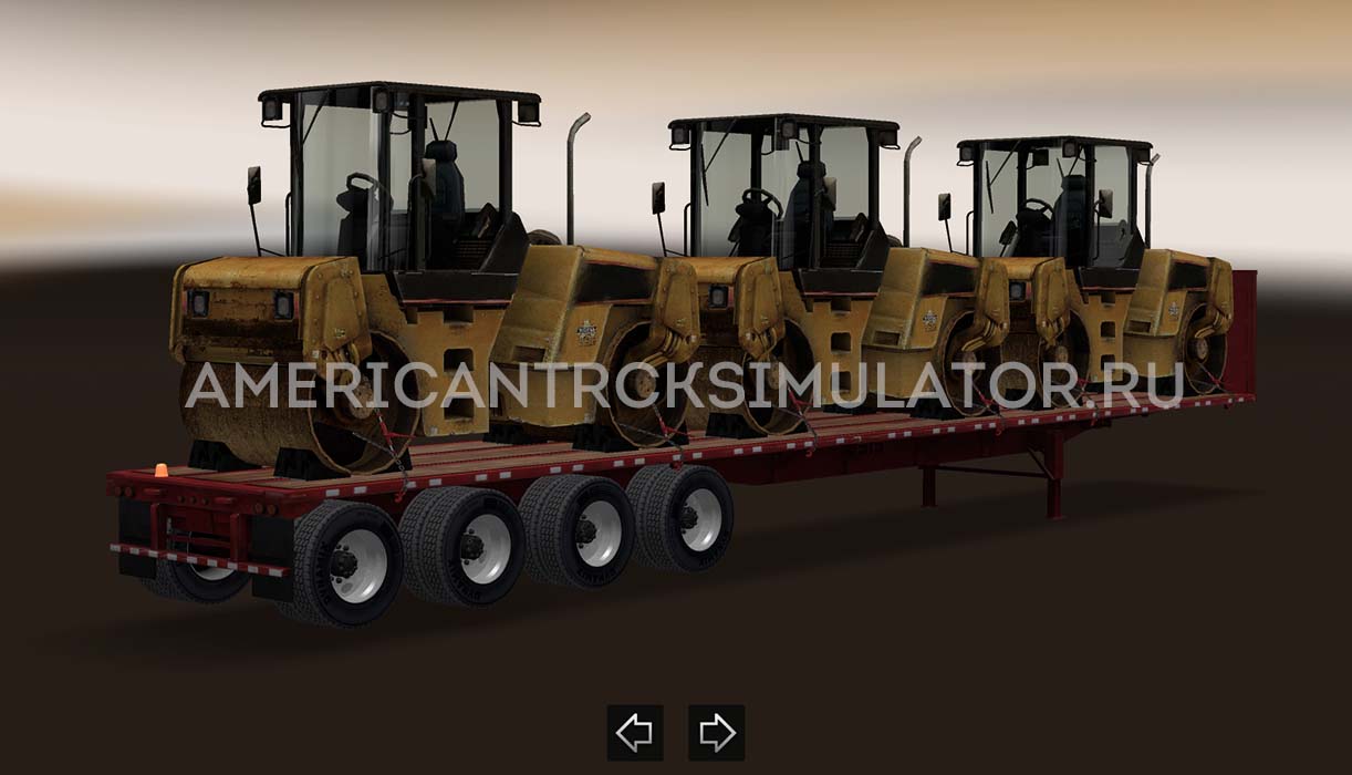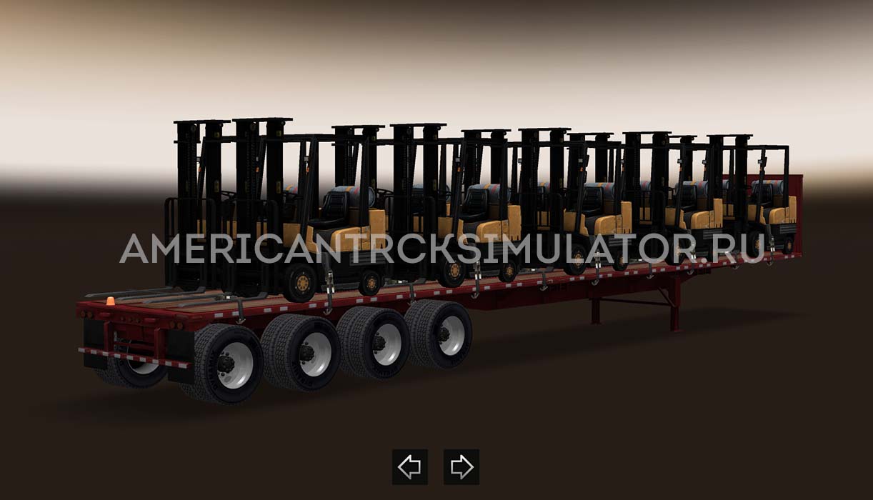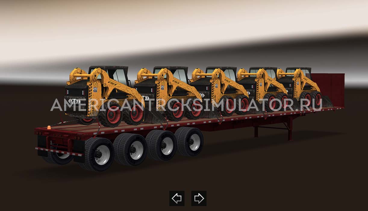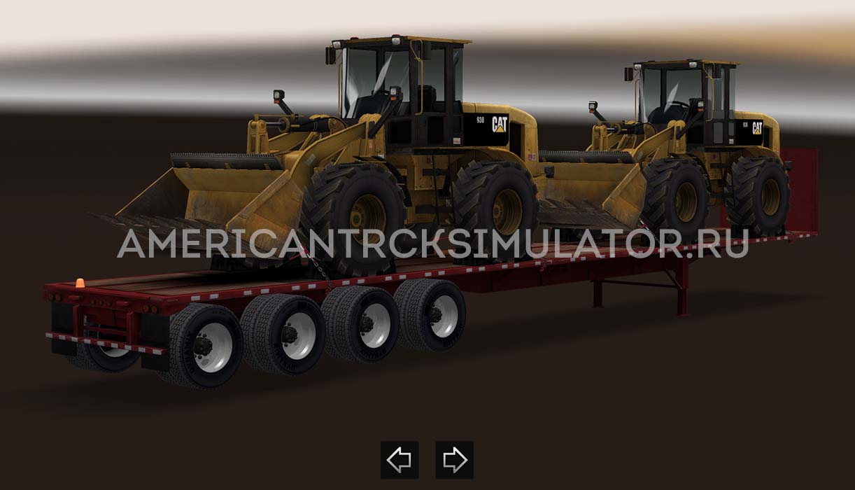 Дополнение стандартного списка длинномерным четырехосным прицепом для American Truck Simualtor с пятью уникальными грузами. В игре данный прицеп выглядит в виде длинной красной платформы типа "Flatbed", которая позволяет перевозить грузы массой от 12 до 60 тонн. Для транспортировки предоставлен ряд промышленной техники разного назначения. Каждый груз имеет уникальный вид и высокую детализацию мелких деталей, что придает технике более реалистичный вид в игре. На платформу прицепа вмещается от 3 до 5 единиц пром.транспорта, погрузчики, эскалаторы, тракторы и другие. Автор SCS, Solaris36, Zetor165Maxterra.