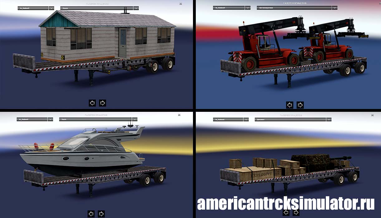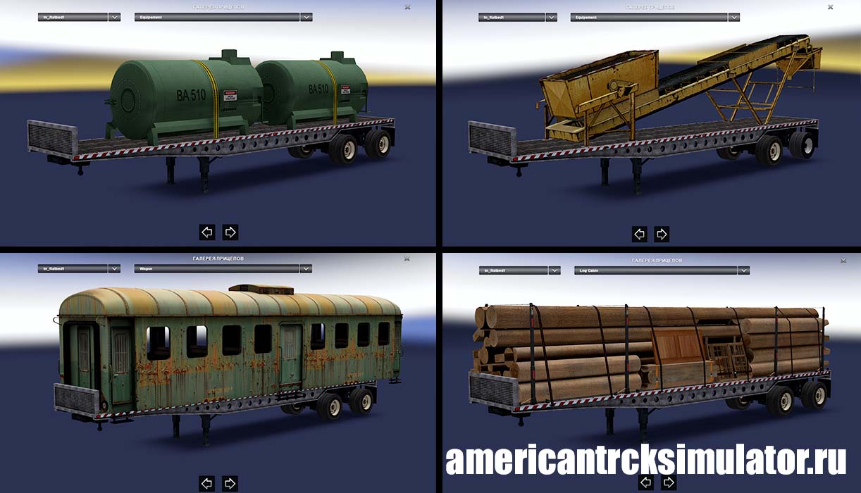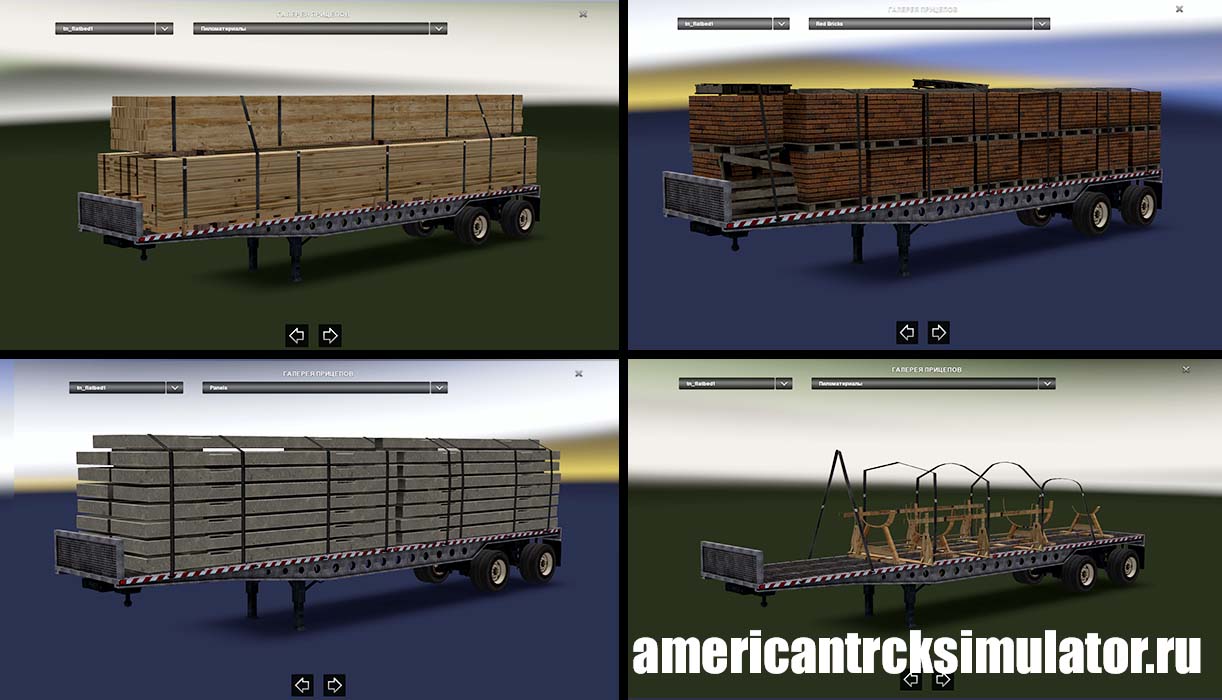 В American Truck Simulator платформы выполнены в виде широкой открытой поверхности с деревянной отделкой и бортовой аналогичной первой. Благодаря им Вы сможете перевозить добавленные в ATS 19 уникальных грузов.