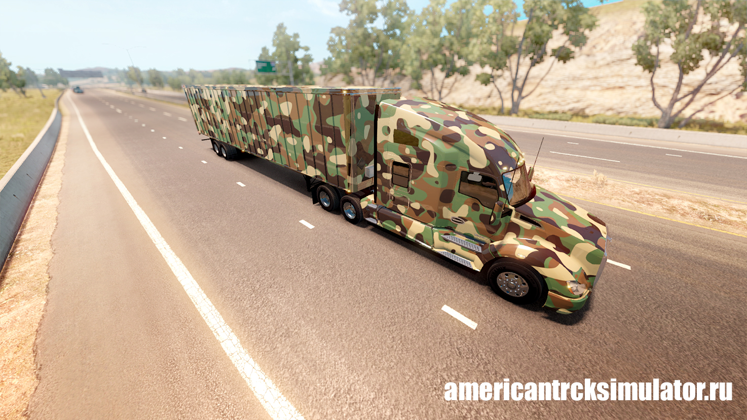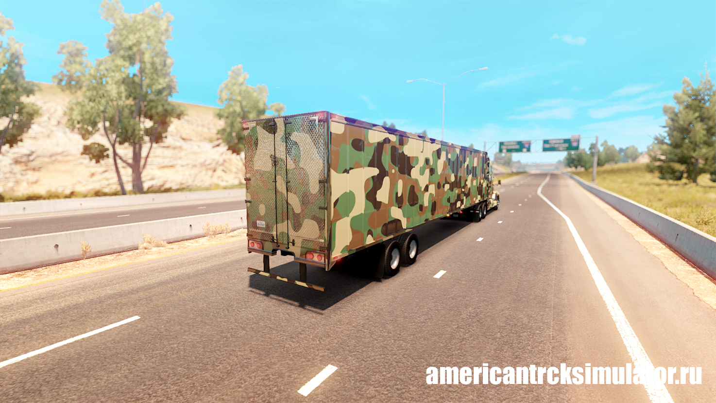 Этот мод заменяет в игре цельнометаллический длинный прицеп компании Oakland Shippers. Данный прицеп сделан специально для скина KENWORTH Military, который вы можете скачать с нашего сайта. Его окраска выполнена из множества частей, которые окрашены в разные цвета.