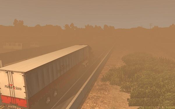 Необыкновенная модификация, добавляющая песчаные бури и туман в ATS! Теперь помимо дождей, и темных ночей, препятствием при доставке груза станут песчаные бури. Даже днем видимость минимальная, и можно угодить в аварию, если не пользоваться GPS и картой. Высокая скорость во время тумана также негативно сказывается на результате поездки.
