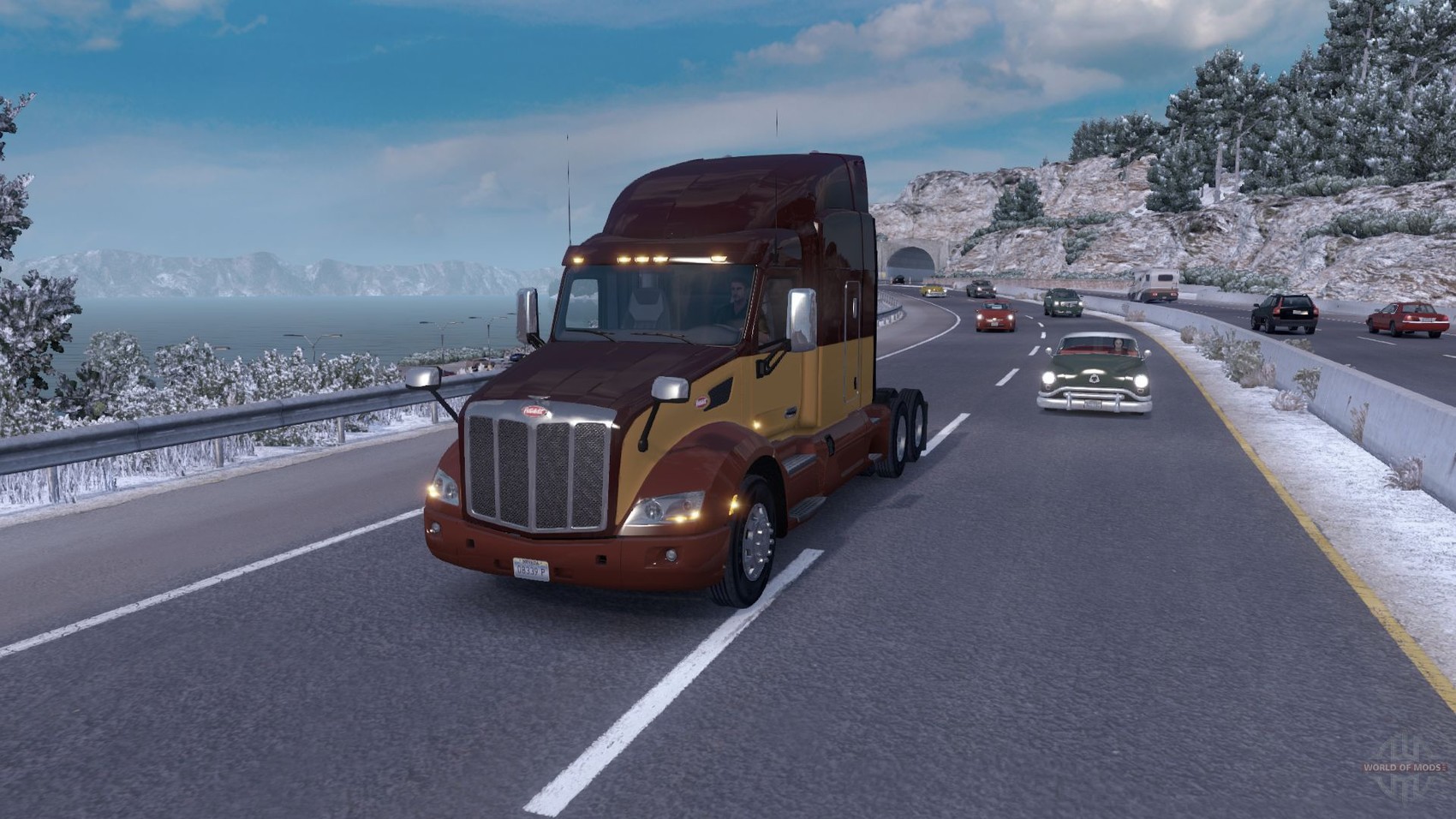 Мод на зиму для ATS кардинально меняет карту игрового мира, и создает праздничное настроение. Сгоревшие кустарники и пустынные места становятся снова живыми, и приятными глазу. Езда по заснеженным дорогам создает волшебное впечатление, и снова подогревает желание проходить любимый симулятор.
