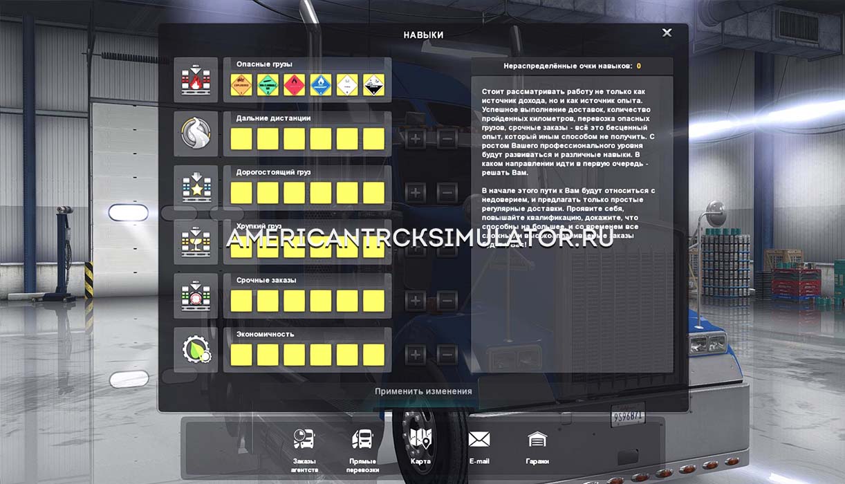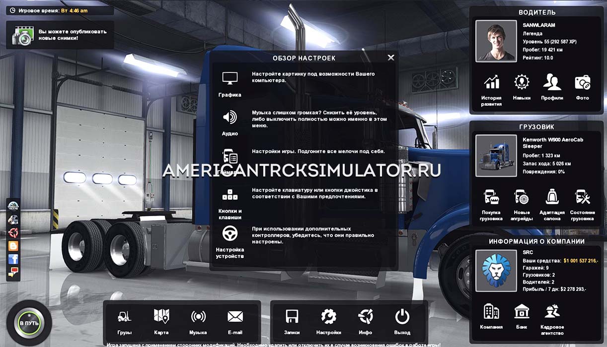 Данное дополнение изменяет стандартный пользовательский интерфейс в American Truck SImulator. Теперь окна меню навигации выглядят проще и современнее, так же были добавлены новые иконки разделов в плоском стиле Flat. Помимо основной миссии мод увеличивает производительность игры на слабых ПК из за своей простоты.