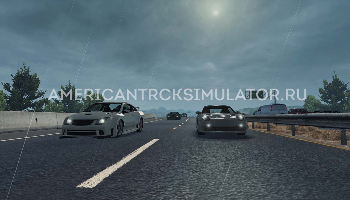 Данный мод улучшает звук и эффект присутствия дождя в American Truck Simualtor. Капли от дождя на лобовом стекле теперь выглядят более реалистичнее, что теперь более сильнее затрудняет видимость дороги во время непогоды. Количество капель и мощность дождя изменяются в процессе игры.