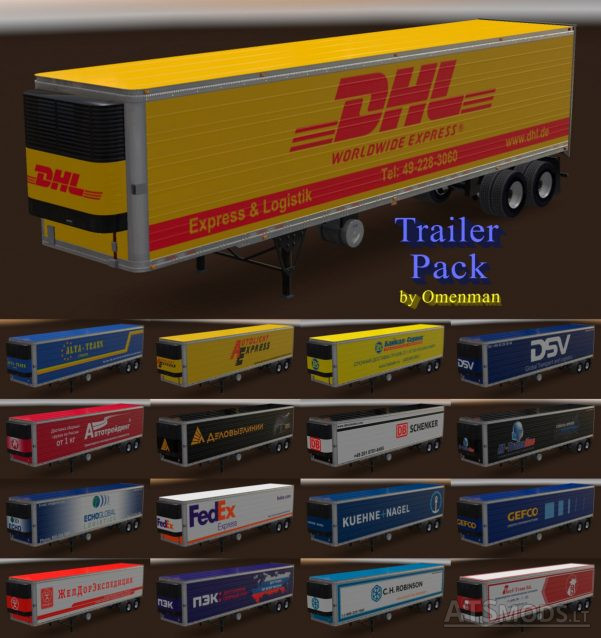 Заменяет стандартные наклейки трейлеров на современные логистические логотипы компаний, которые реально существуют. Модификация любительская, и подойдет особенно тем дальнобойщикам, которые делают упор на реализм в игре, либо стараются сделать неотразимые от реальности фотографии. Авторы модов часто прибегают к склеиванию большого количества аддонов, чтобы создать шедевральный пейзаж.