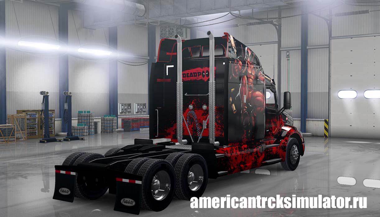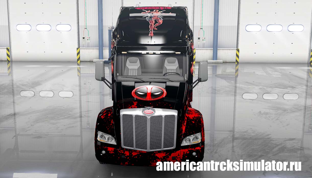 Данный мод добавляет в American Truck Simulator новый скин для грузовика Deadpool Peterbilt 579.