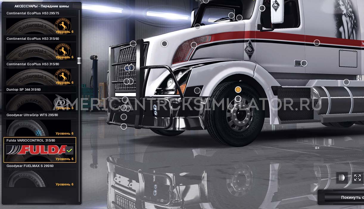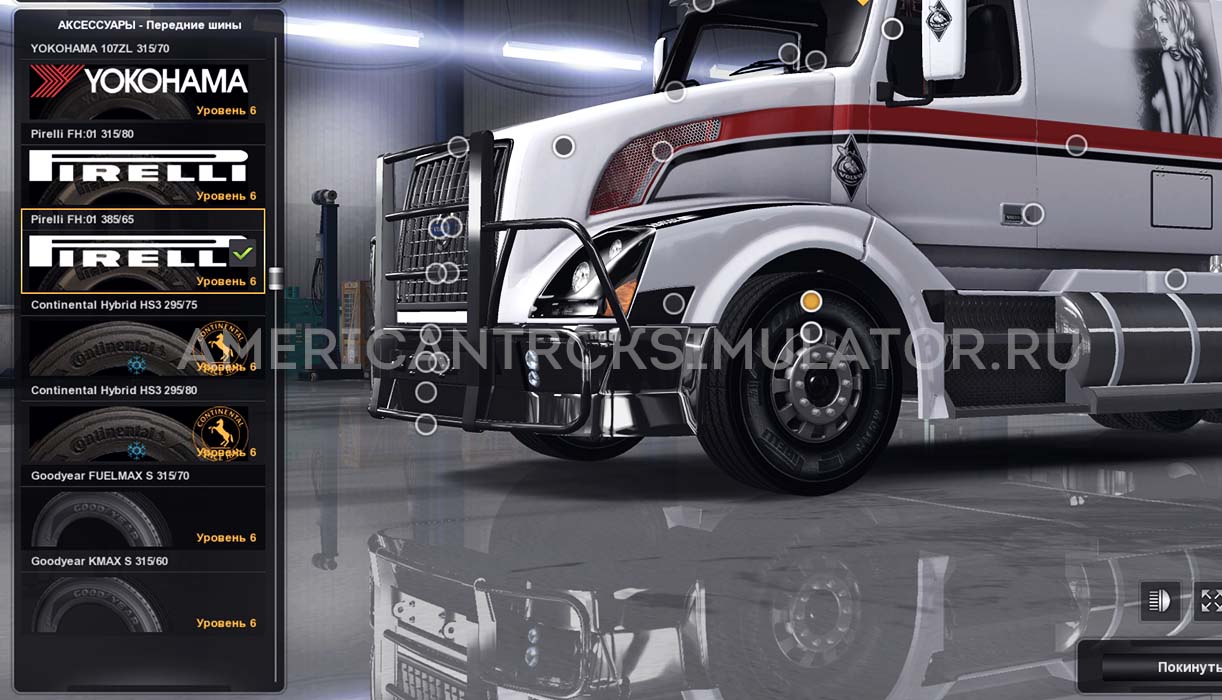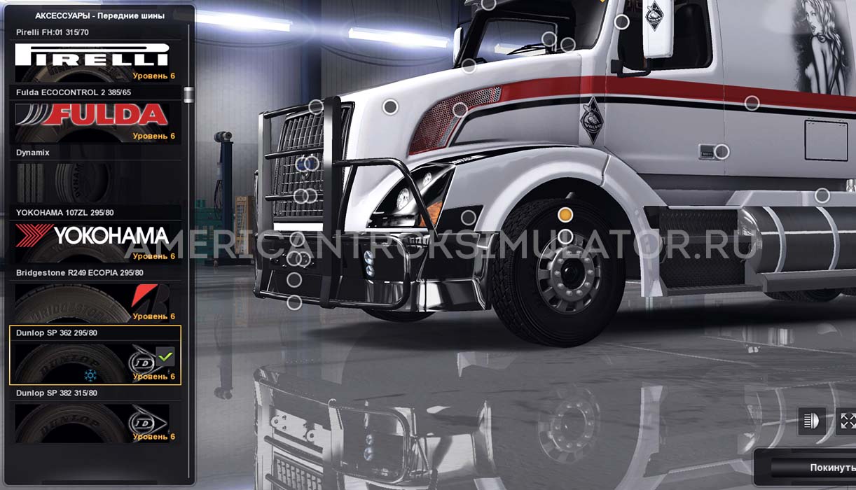 Каждая из шин имеет свой уникальный вид, ширину - диаметр, протектор, надпись на торцевой стороне. Реальные шины для American Truck Simulator поддерживает текстуры высокого качества для каждого вида шин и протекторов.