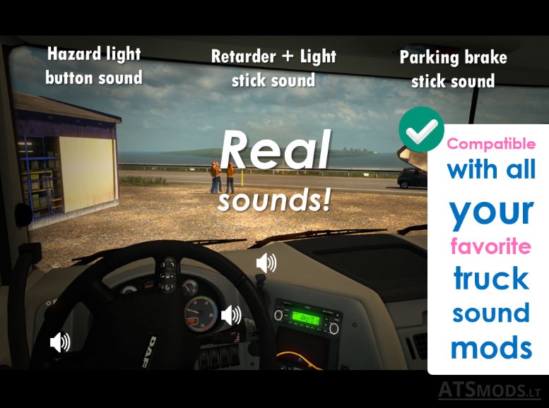 Переработаны звуки грузовиков в трафике, звуки в наборе включают в себя CAT, Cummins и современный PACCAR