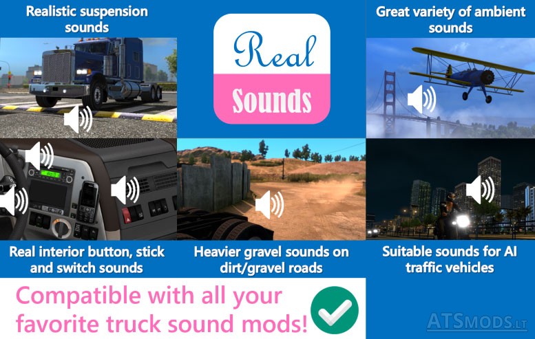 Новая версия 14.2 пака изменения звуков для ATS, с помощью которой общие звуки в игровом мире станут еще более приближенными к реальным и захватывающими. Особенностью обновленной версии мода является поддержка актуальной 1.2.X версии игры.